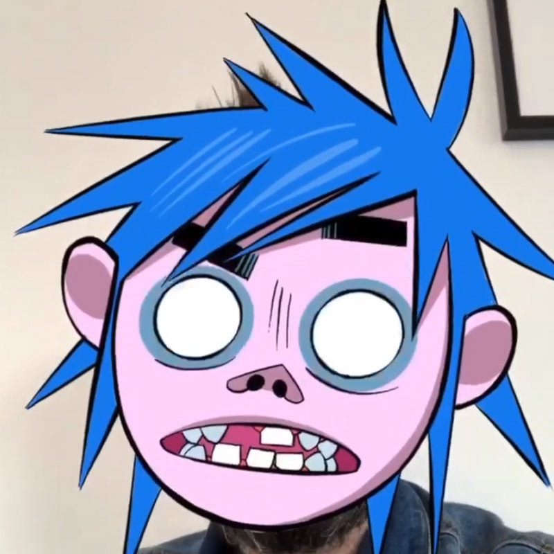 The legendary Gorillaz wanted a simple cross platform AR effect which would allow their fans to ape about under the guise of 2-D, Noodle, Murdoc or Russel. Marc took the images provided by the client and drew a few simple expressions in the style of Jamie Hewlett to bring a bit of life to the 2D masks.